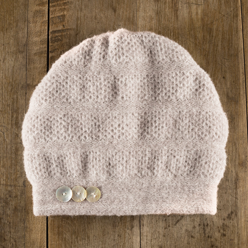 It's in the name. The Mercury is accented with five natural shell buttons — a feature which creates a magical, colour-shifting sparkle, while also being the perfect compliment to this hat's understated palette. Fully lined for winter with 100% merino, and handmade in Canada.