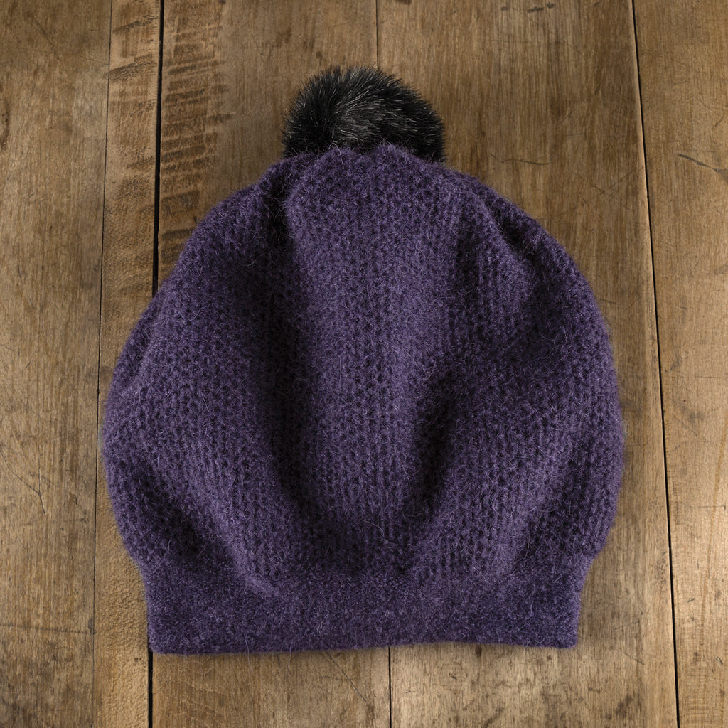 A faux fur pom pom enhances this beanie's vintage demeanor. For the ski bunny with sass and class. Fully lined with merino wool, and proudly made in Canada.