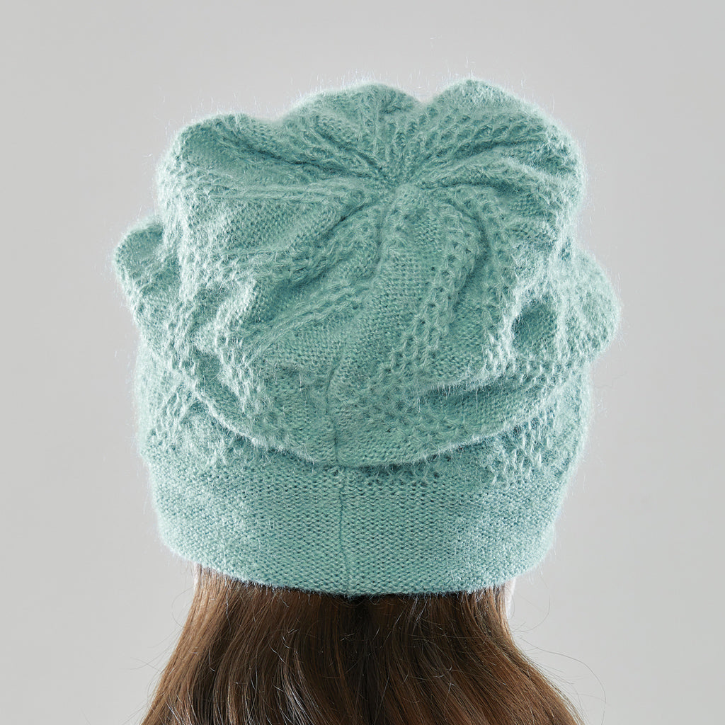 With a high merino blend through and through, the Vela takes on Canadian winters in style. Highlighted with a touch of mohair sparkle, and three natural shell buttons. Pleated at the back to hold its impeccable shape. Crafted with love in Collingwood, Ontario.